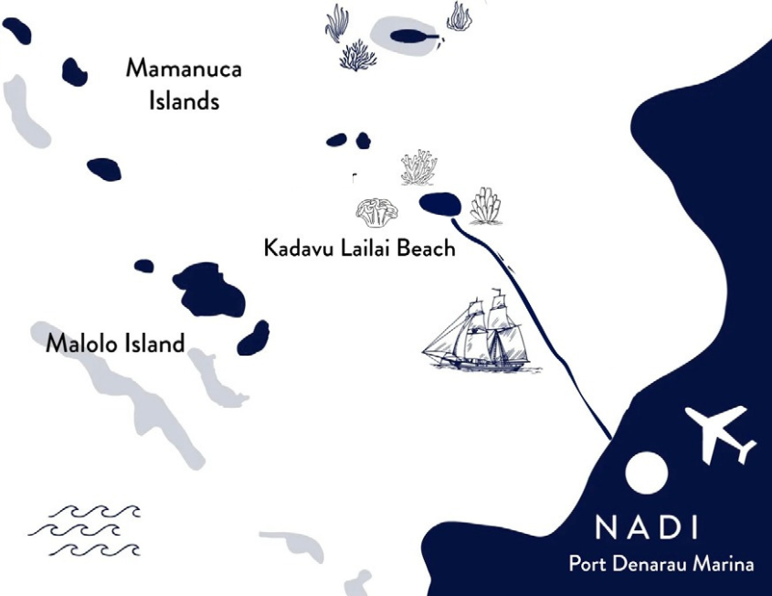 • Tall ship cruise under 60-minutes each way between Port Denarau and Kadavu Lailai Private Beach in the Mamanucas