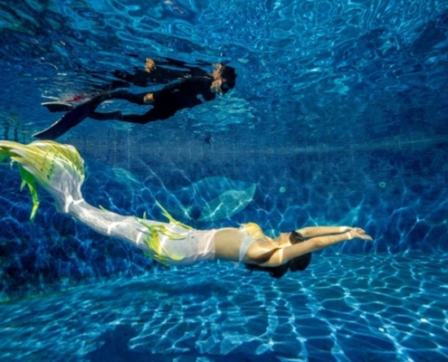 This course, after a short knowledge session (eLearning), is a great in-water (maximum 3m deep) introduction to using a monofin and becoming a mermaid.